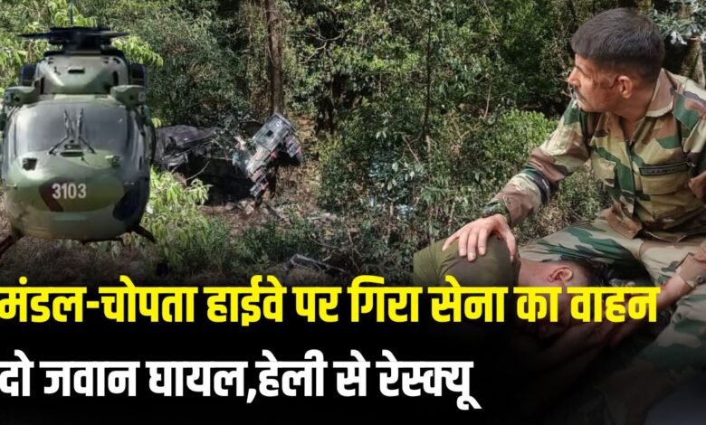 चमोली में मंडल-चोपता राष्ट्रीय राजमार्ग पर खाई में गिरा सेना का वाहन,देवदूत बने दो भाई..