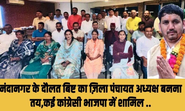 दौलत सिंह बिष्ट का नाम चमोली से ज़िला पंचायत अध्यक्ष पद को लेकर इन दिनों काफ़ी चर्चाओं में है,आज शुक्रवार को दौलत सिंह बिष्ट ने भाजपा प्रदेश कार्यालय में भाजपा प्रदेश अध्यक्ष महेंद्र प्रसाद भट्ट की मौजूदगी में भाजपा की सदस्यता भी ग्रहण कर ली हैं।दौलत सिंह बिष्ट पंचायत की राजनीति में नए हैं,उन्होंने पहली बार ही पंचायत चुनावो में प्रतिभाग कर नंदानगर विकासखंड के मटई वार्ड से चुनाव लड़ा और बंपर मतो से जीत हासिल की,अब भाजपा से दौलत बिष्ट ज़िला पंचायत अध्यक्ष पद के उम्मीदवार हैं,जिनका ज़िला पंचायत अध्यक्ष बनना लगभग तय हैं।