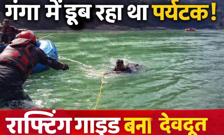 गंगा में डूबते पर्यटक की राफ्टिंग गाइड ने बचाई जान, हेलमेट कैमरे में कैद हुआ रेस्क्यू