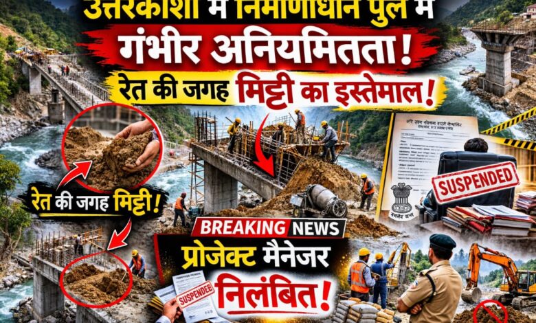 उत्तरकाशी। जिले में सौर से ओसला के बीच बन रहे निर्माणाधीन पुल में गंभीर अनियमितताओं का मामला सामने आया है। पुल निर्माण में तय मानकों की अनदेखी करते हुए रेत की जगह मिट्टी के इस्तेमाल का खुलासा होने पर विभाग ने कड़ा रुख अपनाते हुए संबंधित प्रोजेक्ट मैनेजर को निलंबित कर दिया है।