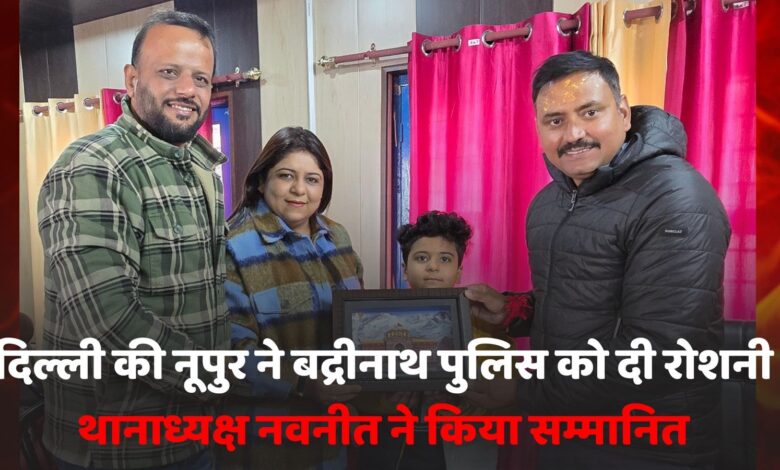 अर्धसैनिक बलों और पुलिस के जवानों को टार्च बाँटने का संकल्प लिए समाज सेवा के क्षेत्र में सराहनीय कार्य कर रही दिल्ली निवासी समाजसेवी नूपुर अग्निहोत्री (गुरु कृपा एंटरप्राइज) को बद्रीनाथ थाना पुलिस के द्वारा स्मृति चिह्न देकर सम्मानित किया गया।नूपुर ने बद्रीनाथ थाना पुलिस के जवानों को भी टार्च वितरित किए।