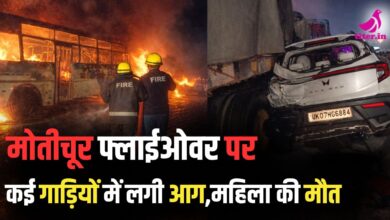 हरिद्वार-ऋषिकेश हाईवे पर मोतीचूर फ्लाईओवर के ऊपर कई गाड़ियों में लगी आग,महिला की मौत..